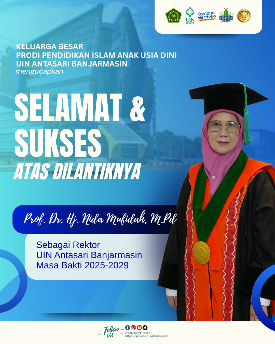 Jakarta — Menteri Agama Republik Indonesia, Prof. Dr. K.H. Nasaruddin Umar, M.A., melantik secara resmi Prof. Dr. Hj. Nida Mufidah, M.Pd. sebagai Rektor Universitas Islam Negeri Antasari Banjarmasin periode 2025–2029. Pelantikan ini berlangsung khidmat di Kantor Kementerian Agama Republik Indonesia, Jakarta, pada Rabu (12/11/2025), dengan dihadiri oleh pejabat Kemenag, sivitas akademika, serta para undangan.